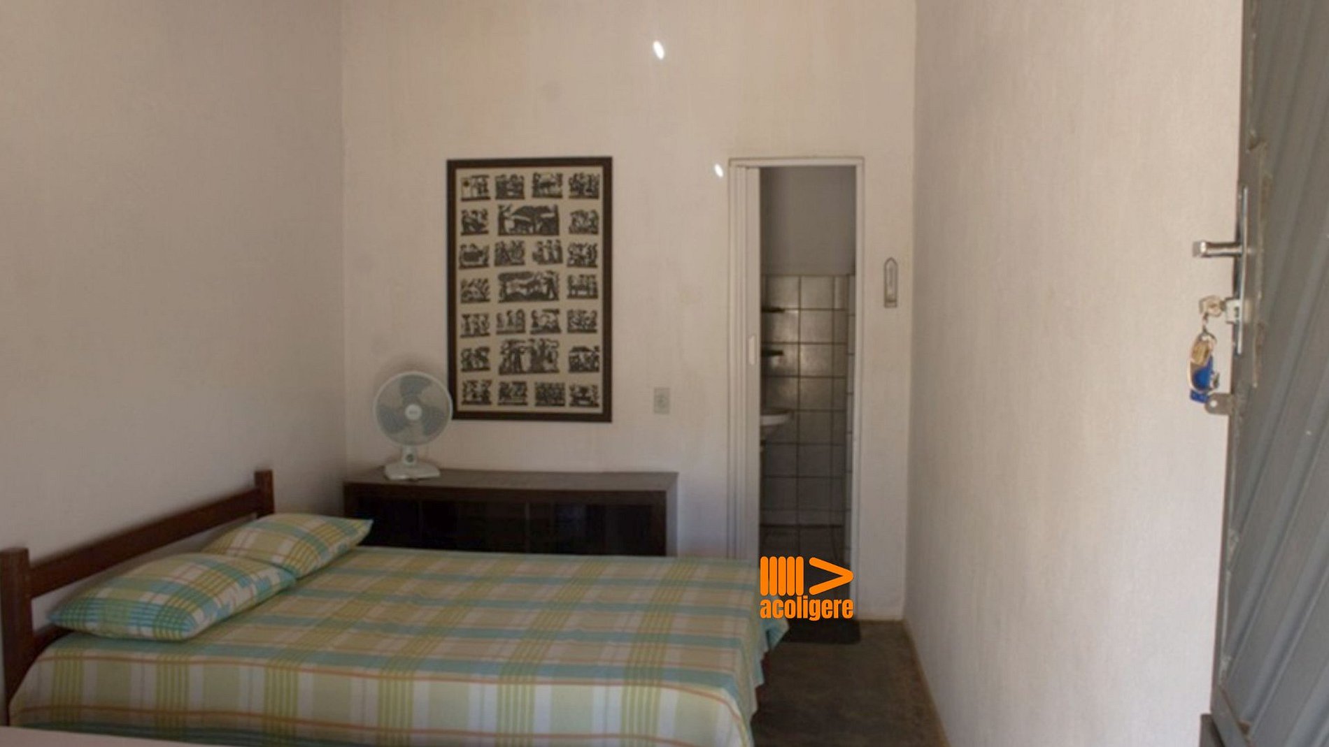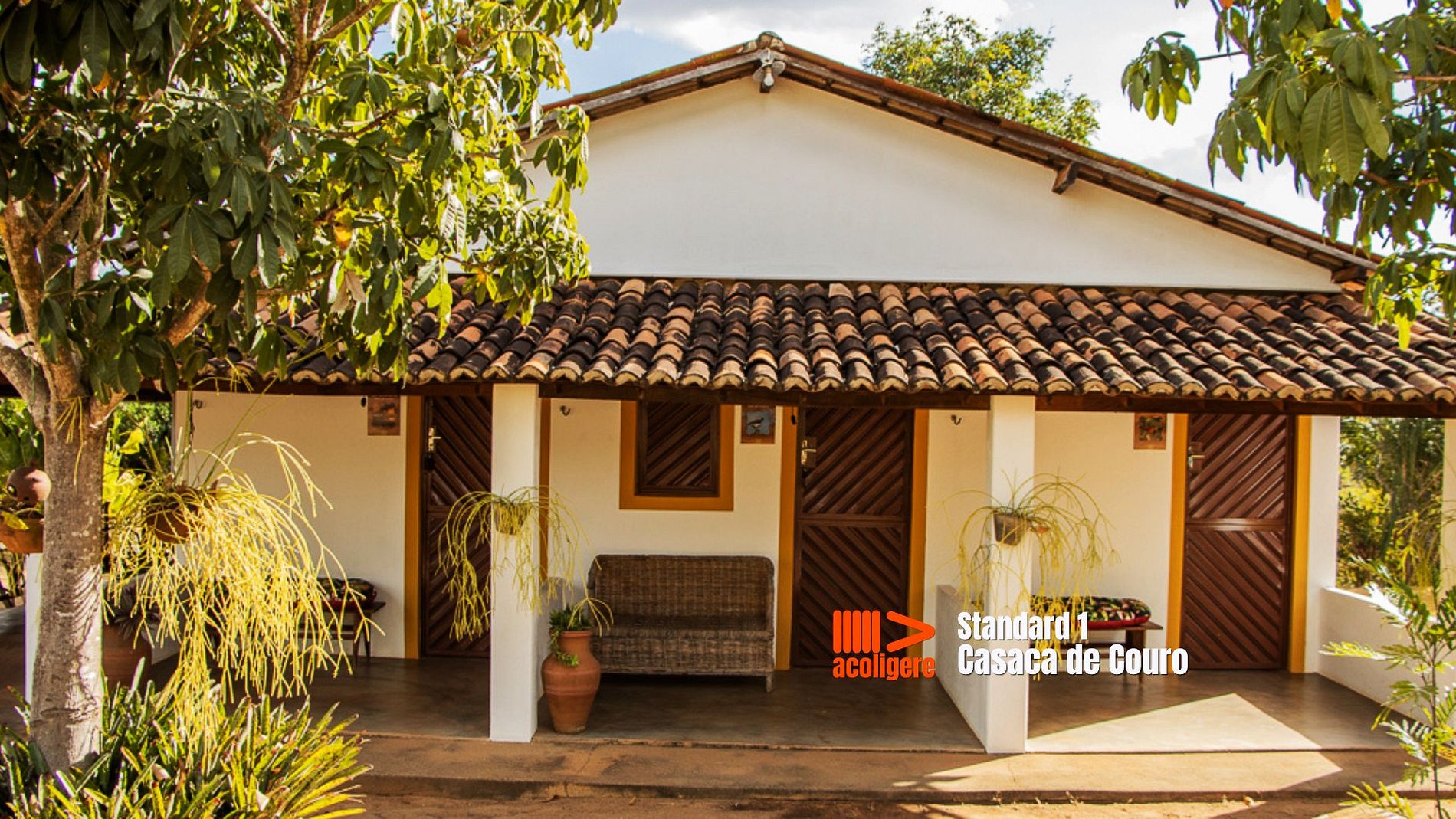 Com **23m²**, o **Apartamento Galo de Campina** acomoda até **3 pessoas** em um ambiente confortável e acolhedor. A suíte conta com **cama de casal colonial em madeira**, além de espaço para **uma cama extra de solteiro**. O banheiro, embora compacto, oferece **banho quente com aquecimento solar**. Para completar a experiência, o apartamento dispõe de **ventilador** e um **terraço privativo com armador de rede**, ideal para relaxar e apreciar a paisagem da Serra do Teixeira.