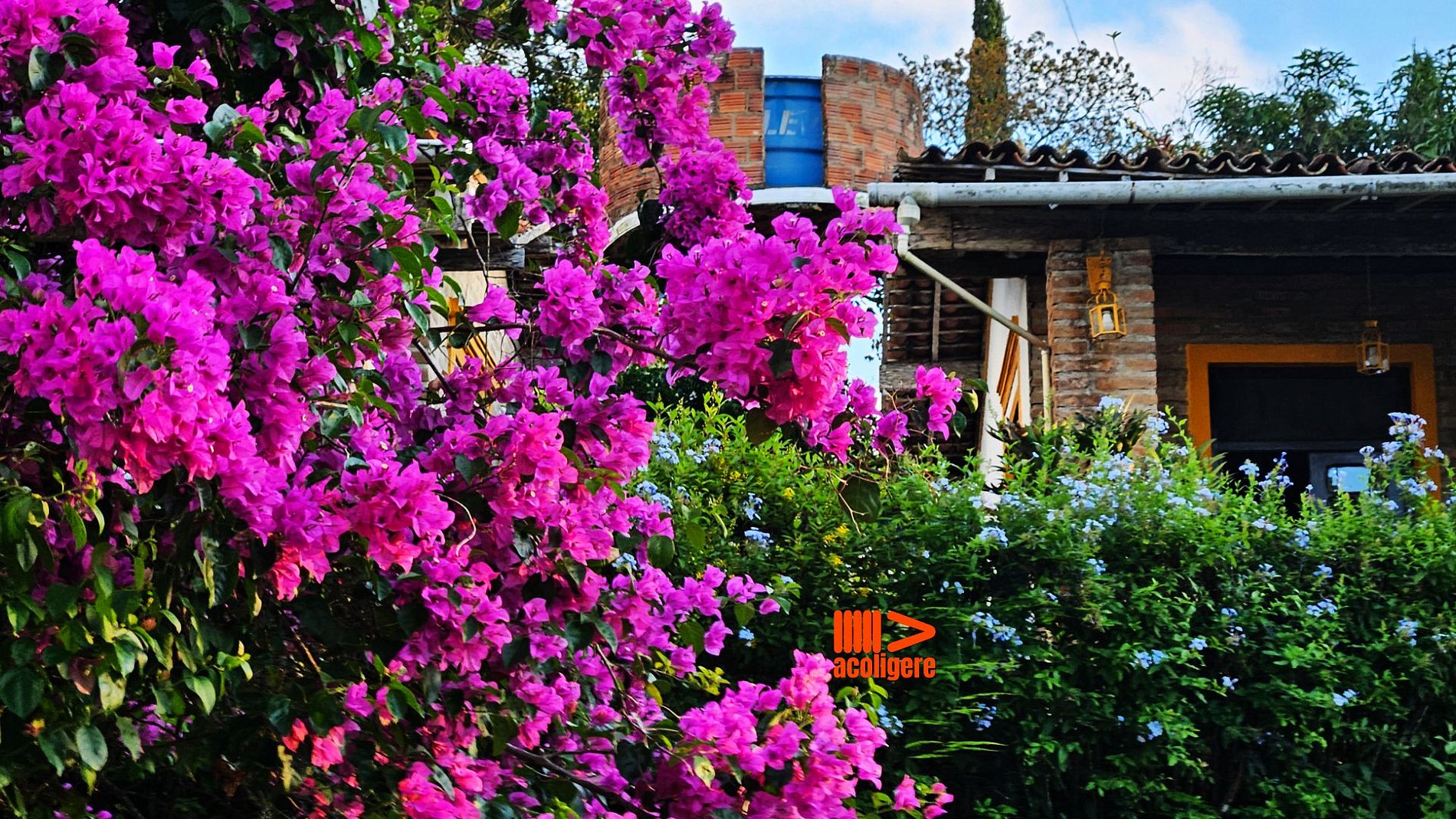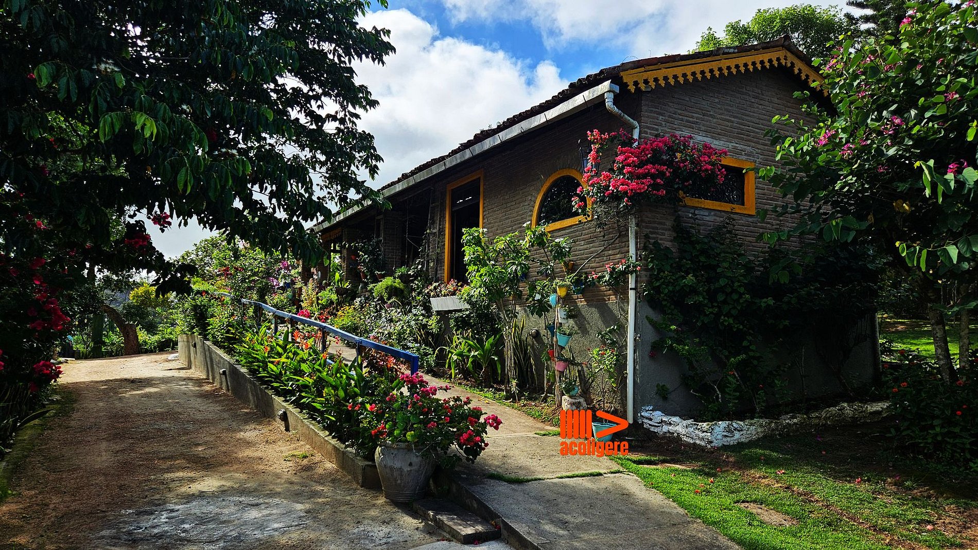Um refúgio acolhedor entre flores, árvores e montanhas.