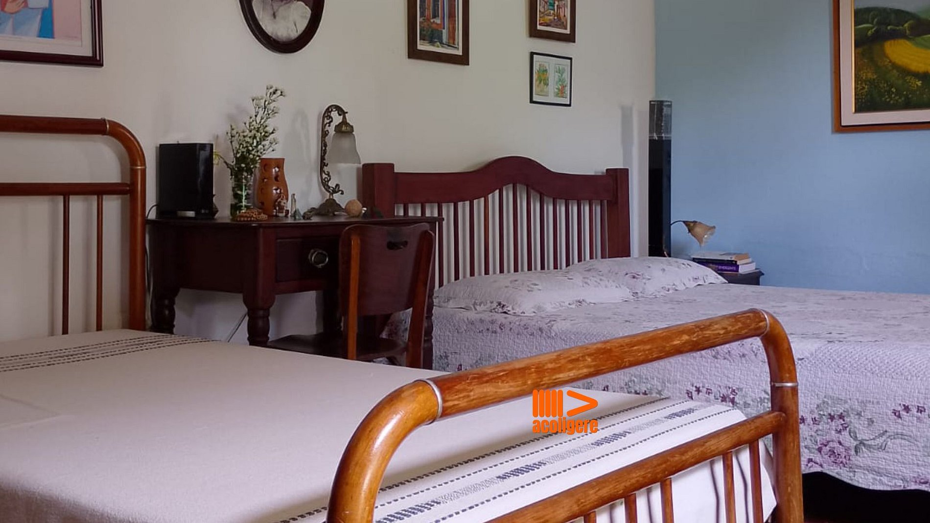 A Suíte 3 da Pousada Casa de Meg é acolhedora e ideal para quem busca sossego e simplicidade em meio à natureza de Serra Negra. Com camas confortáveis, mobília rústica e acesso direto à varanda, oferece uma experiência tranquila e charmosa. O banheiro privativo garante mais comodidade durante a estadia. A Pousada Casa de Meg é pura paz. Margareth e Izabel, as proprietárias, são parceiras da Acoligere